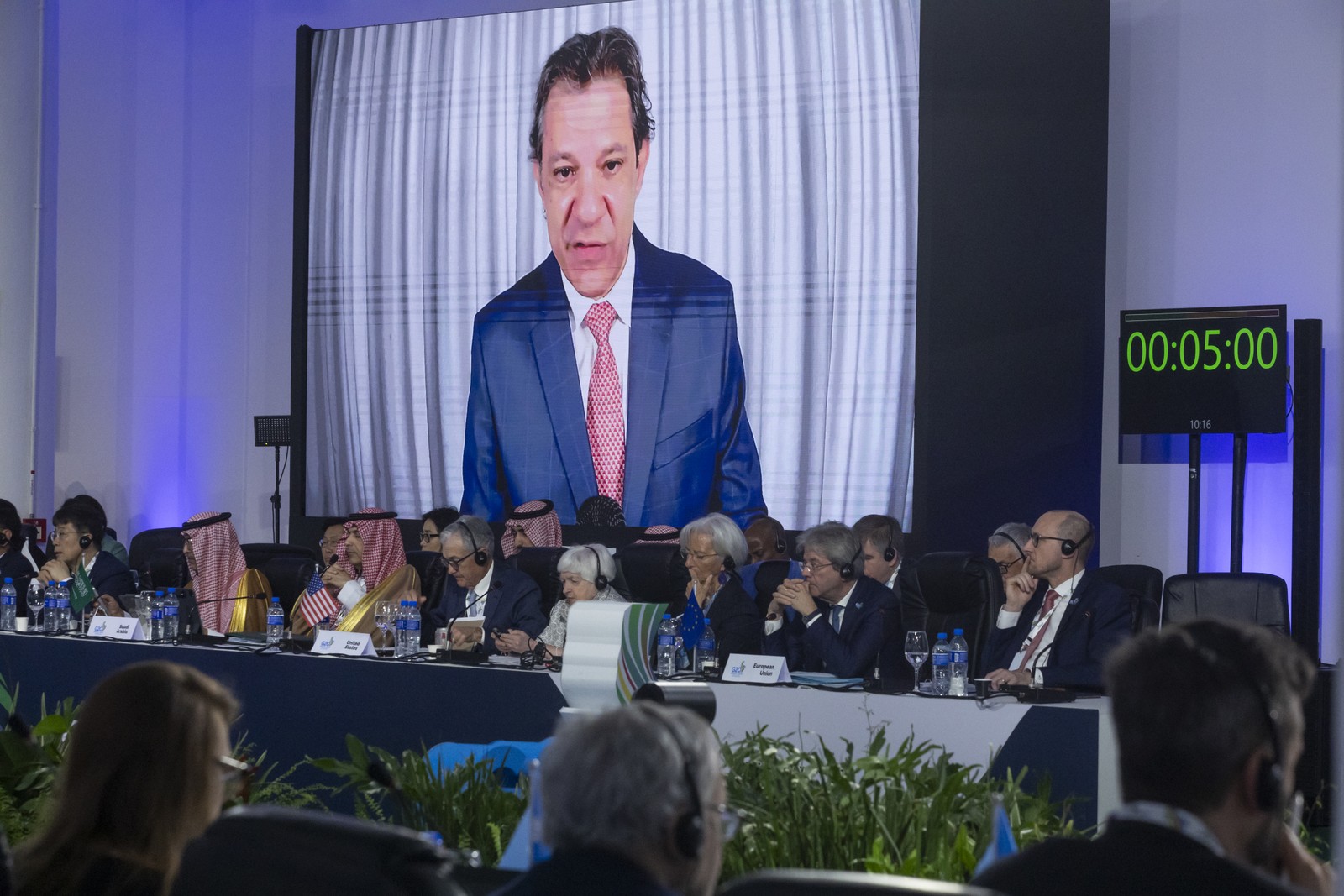 Participam também do encontro os presidentes dos Bancos Centrais do G20,além da secretária do Tesouro dos Estados Unidos,Janet Yellen,e a diretora do Fundo Monetário Internacional (FMI),Kristalina Georgieva. — Foto: Maria Isabel Oliveira/ Agência O Globo