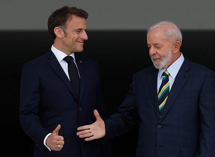 Lula e o presidente francês Emmanuel Macron no Palácio do Planalto,Brasília — Foto: Cristiano Mariz/Agência O Globo