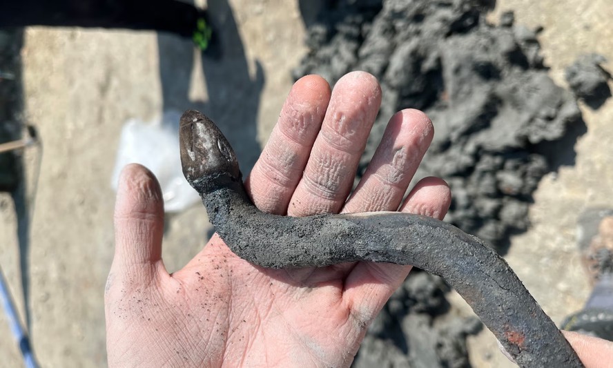 Serpente de bronze encontrada em um antigo spa termal na Toscana,Itália — Foto: Claudia Petrini/SABAP-SI Município de San Casciano dos Bagni Unistrasi