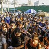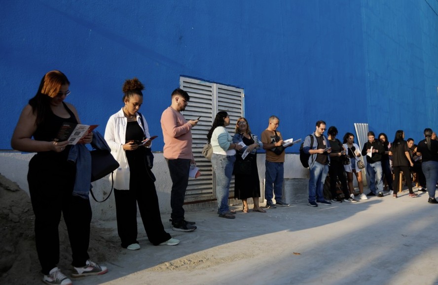 Candidatos aguardam na fila para fazer a prova do CNU na Unisuam,em Bonsucesso — Foto: Gabriel de Paiva/ Agência O Globo