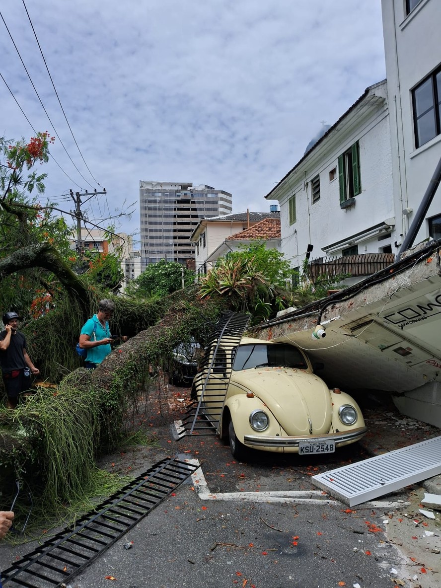 Árvore cai em Botafogo,na Zona Sul do Rio — Foto: Reprodução RESUMOSem tempo? Ferramenta de IA resume para você