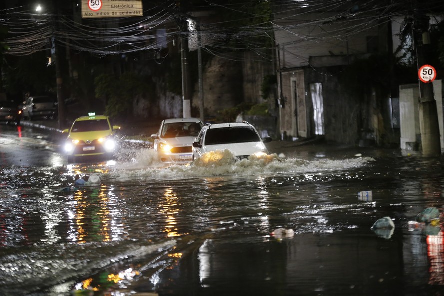 Alagamento na Rua Clarimundo de Mello,Piedade — Foto: Agência O Globo / Domingos Peixoto RESUMOSem tempo? Ferramenta de IA resume para você
