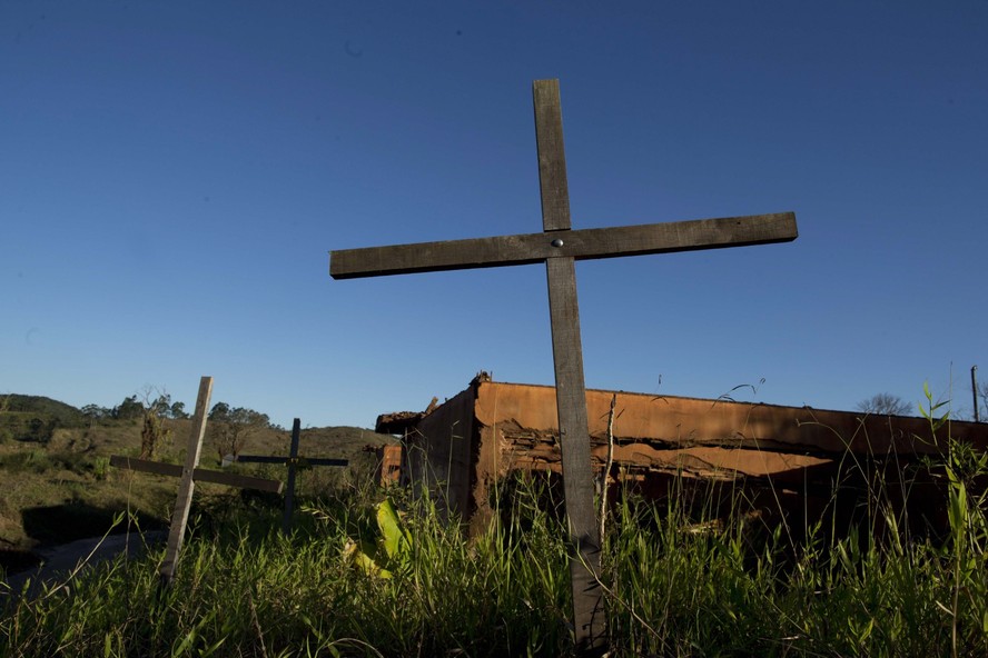 Ruínas do distrito de Bento Rodrigues,atingido pelo rompimento da barragem do Fundão,em Mariana — Foto: Márcia Foletto / Agência O Globo/ 26-05-2018