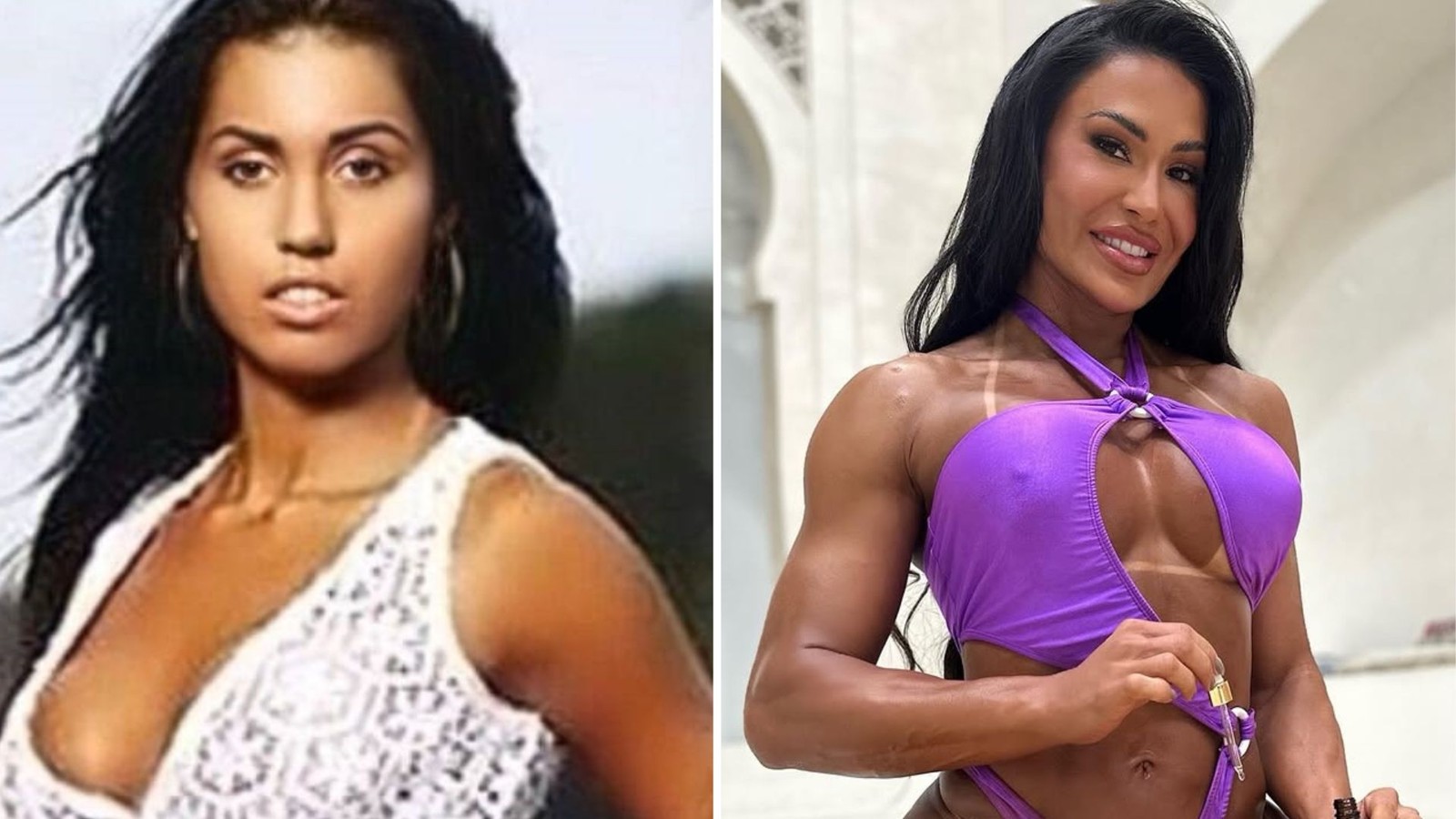 Gracyanne Barbosa mudou bastante o corpo ao longo dos anos. Ela já realizou preenchimento de queixo para alongar o rosto,harmonização facial e preenchimentos com ácido hialurônico. Com o passar do tempo,a musa fitness reverteu alguns deles — Foto: Reprodução/internet e Tiago Brov.