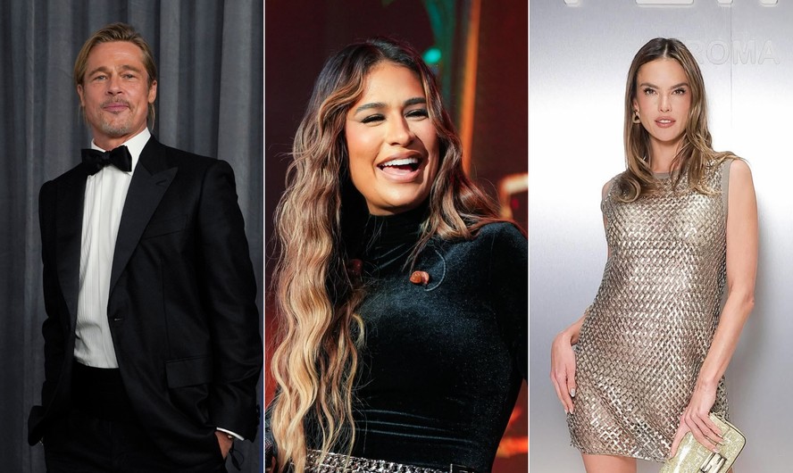 Brad Pitt,Simone Mendes e Alessandra Ambrósio — Foto: Chris Pizzello /POOL/AFP e Reprodução RESUMOSem tempo? Ferramenta de IA resume para você