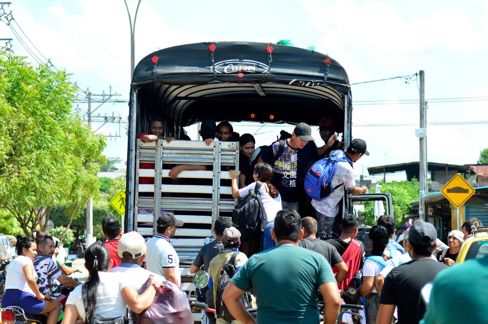 Cerca de cinco mil pessoas foram deslocadas de suas casas por conta de conflitos entre guerrilhas no norte da Colômbia — Foto: Schneyder Mendoza / AFP