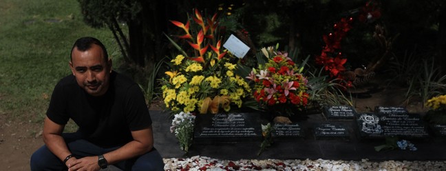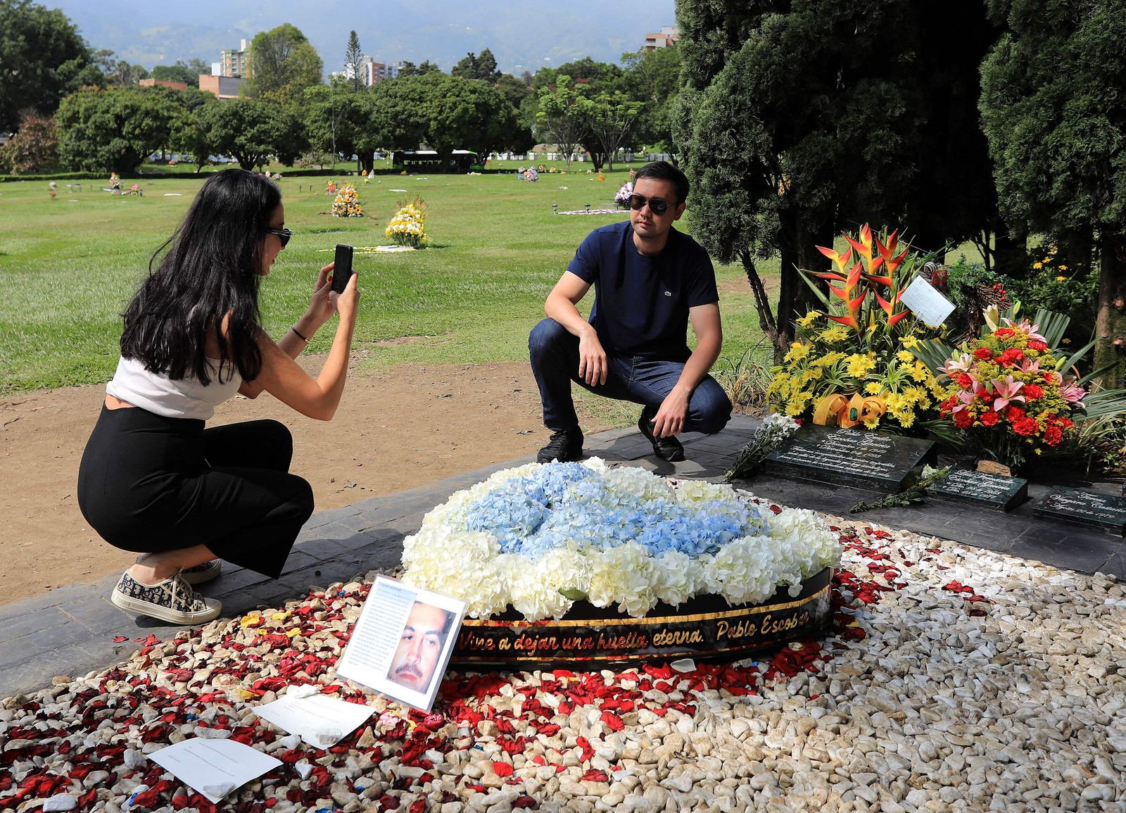 Túmulo de Pablo Escobar recebe visitantes do mundo todo em Itagui,próximo a Medellin — Foto: JAIME SALDARRIAGA / AFP