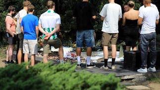 Turistas visitam o túmulo de Pablo Escobar em Itagui,na Colômbia — Foto: JAIME SALDARRIAGA / AFP