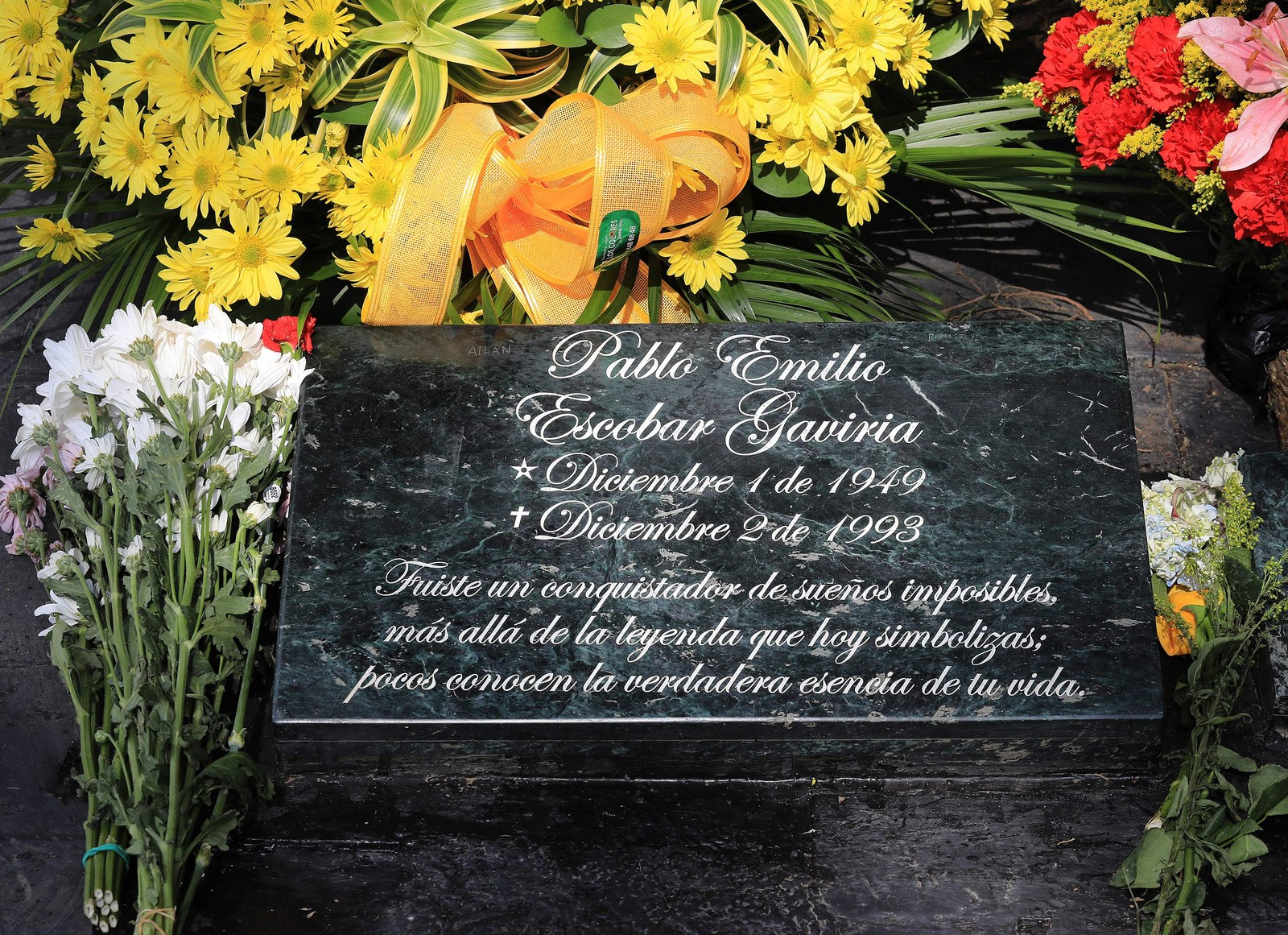 Lápide do narco traficante Pablo Escobar,no Cemitério de Montesacro,em Itagui,na Colômbia — Foto: JAIME SALDARRIAGA / AFP