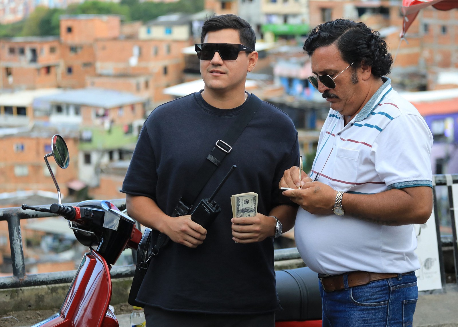 Turista posa ao lado de um sócia de Pablo — Foto: JAIME SALDARRIAGA / AFP