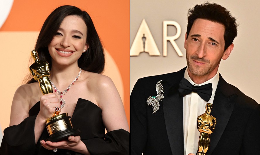 Mikey Madison e Adrien Brody: melhores atores do Oscar 2025 — Foto: AFP RESUMOSem tempo? Ferramenta de IA resume para você