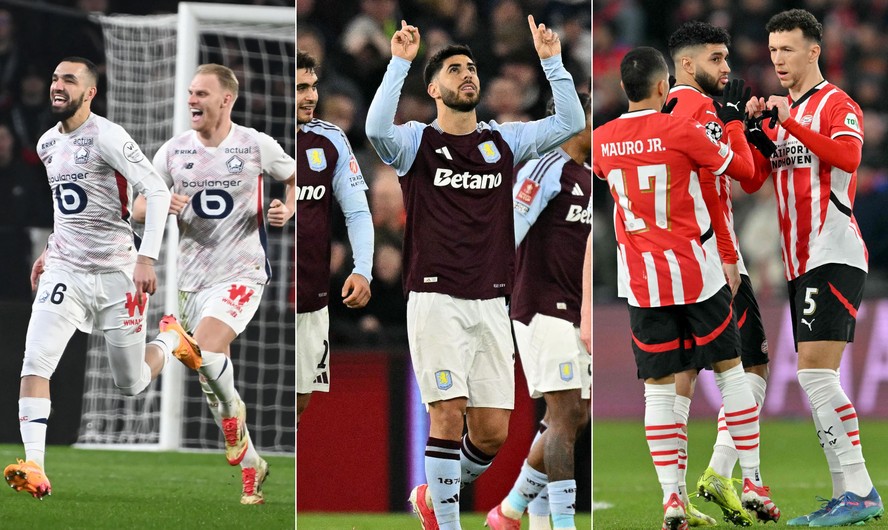 Lille,Aston Villa e PSV chegaram às oitavas de final da Champions League — Foto: 1- JEAN-FRANCOIS MONIER / AFP,2 - Oli SCARFF / AFP e 3 - NICOLAS TUCAT / AFP