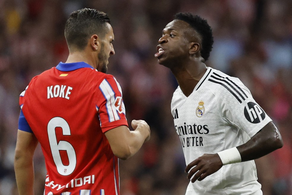 Vini Jr deu assistência em clássico hostil entre Real Madrid e Atlético de Madrid — Foto: OSCAR DEL POZO / AFP