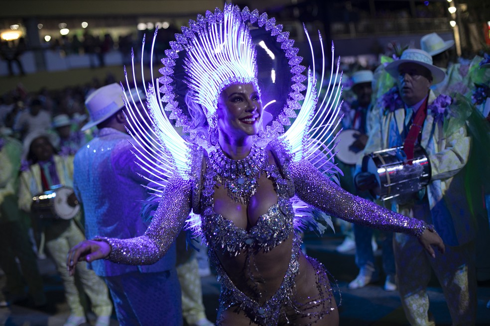 Paolla Oliveira em seu último desfile oficial como rainha de bateria da Grande Rio — Foto: Alexandre Cassiano