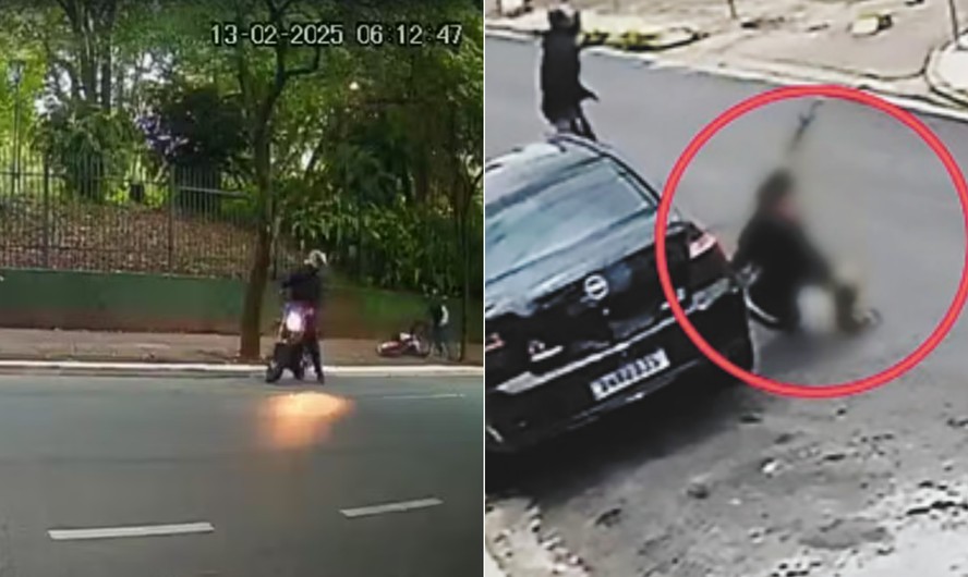 O empresário e ciclista Vitor Medrado foi assassinado por assaltantes em frente do Parque do Povo,no Itaim Bibi,em fevereiro; tiros contra Josenildo Moura em janeiro foram registrados por câmera —