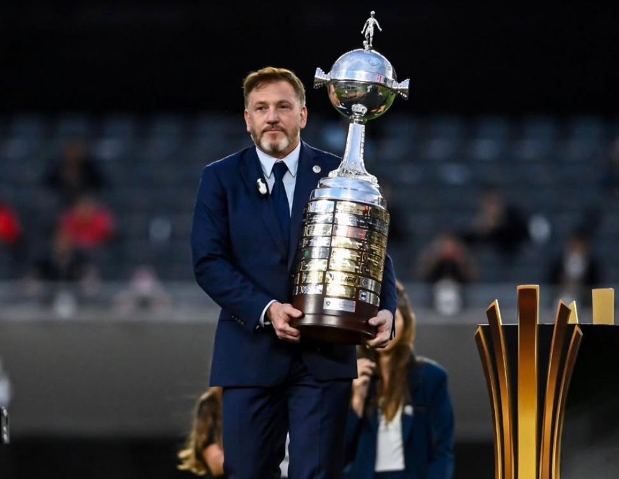 Alejandro Domínguez,presidente da Conmebol,carregando a taça da Libertadores — Foto: Reprodução