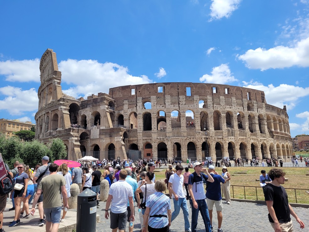 Turistas em frente ao Coliseu,em Roma: governo italiano pretende aumentar o valor da taxa turística do país em até cinco vezes — Foto: Eduardo Maia