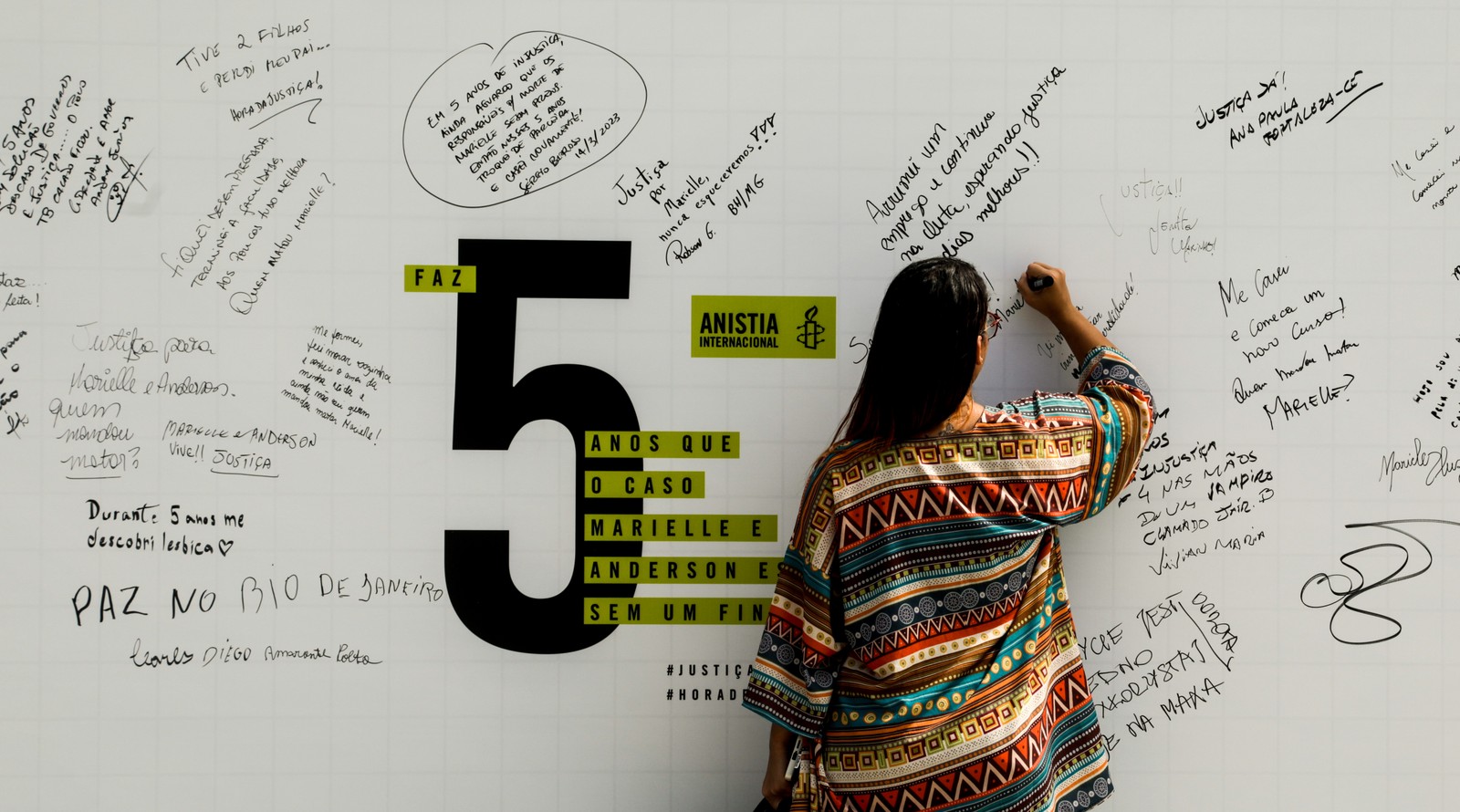 A cada mês,novas manifestações marcavam a cobrança por celeridade nas investigações. A foto mostra voluntários da Anistia Internacional em um desses atos,quando o crime completou três meses — Foto: Pablo Jacob/Agência O Globo