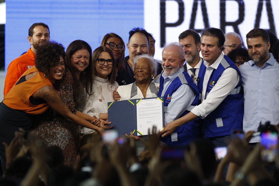 Lula e outras autoridades durante o evento desta segunda-feira — Foto: Alexandre Cassiano RESUMOSem tempo? Ferramenta de IA resume para você