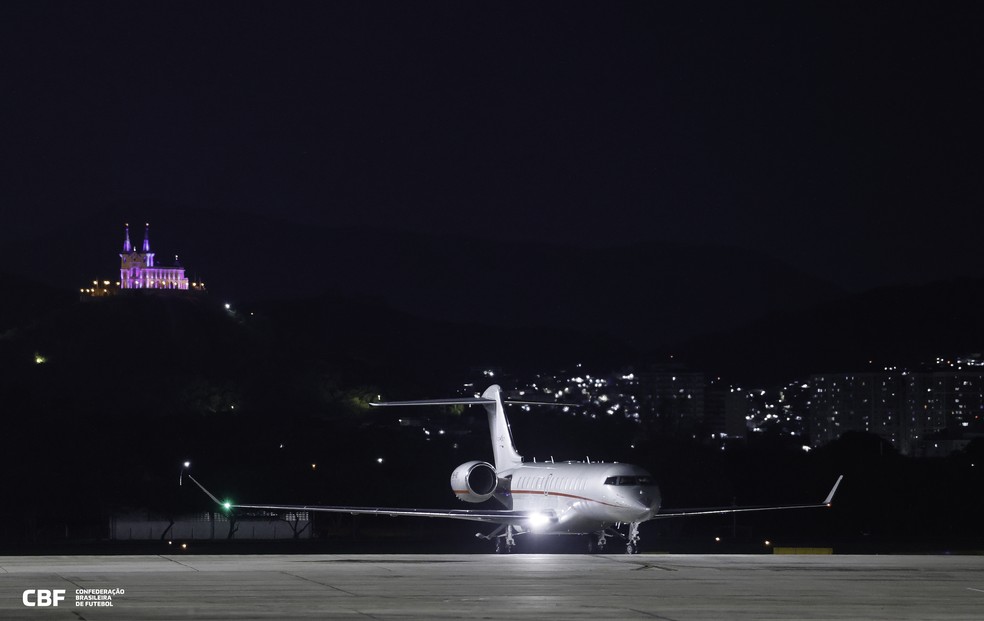 Avião em que estava o novo técnico da seleção brasileira,Carlo Ancelotti — Foto: Rafael Ribeiro / CBF