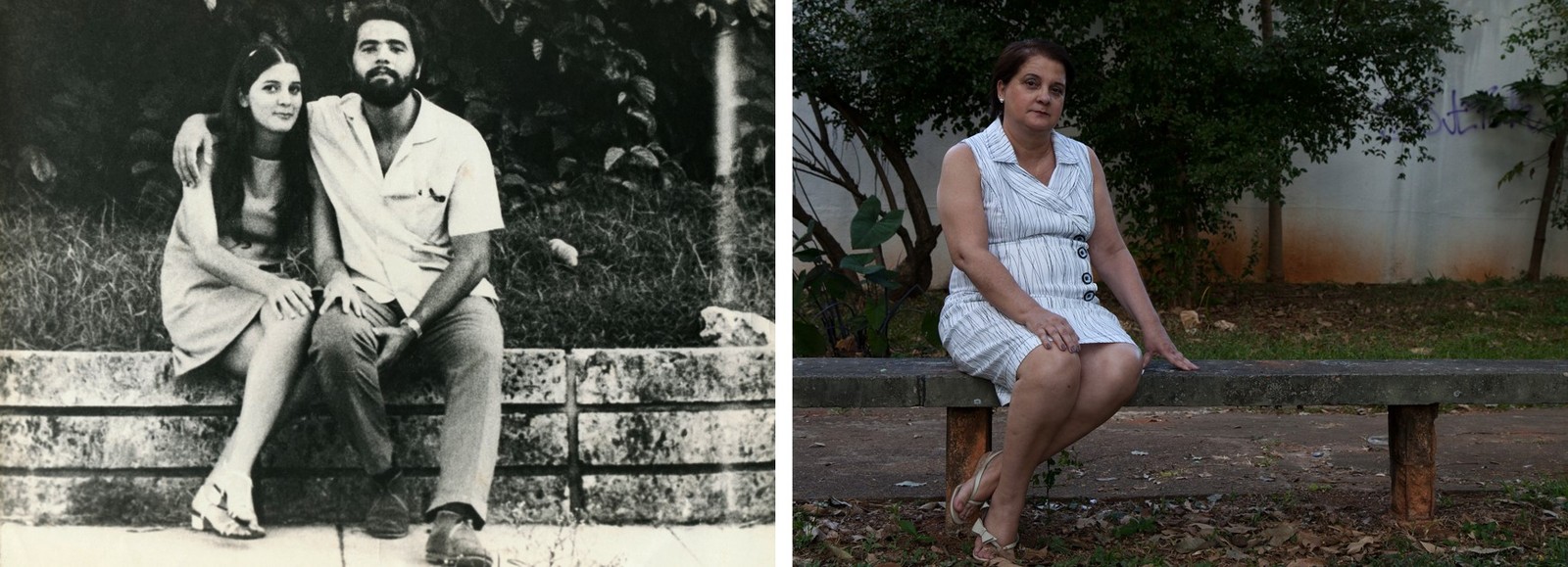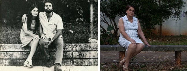 Lara Xavier,em 1970,com o esposo. Ao lado,Laura sozinha em 2012. — Foto: Divulgação/Gustavo Germano