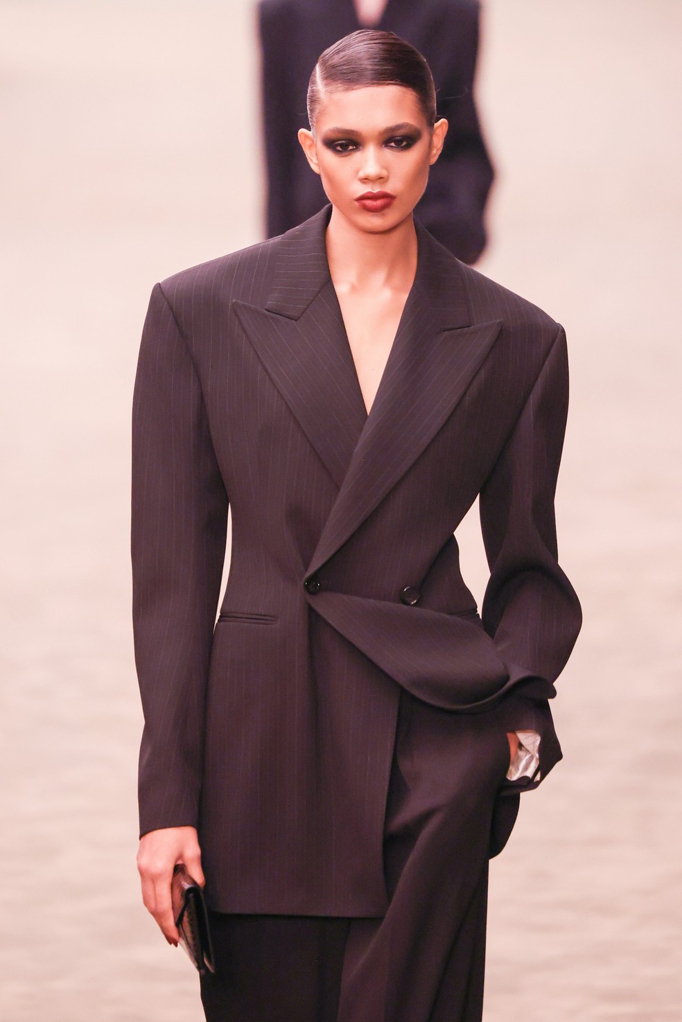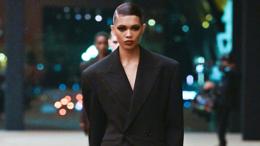 Thalita Ferreira,descoberta em pizzaria,abre desfile da Saint Laurent e conta como começou na moda — Foto: Getty Images